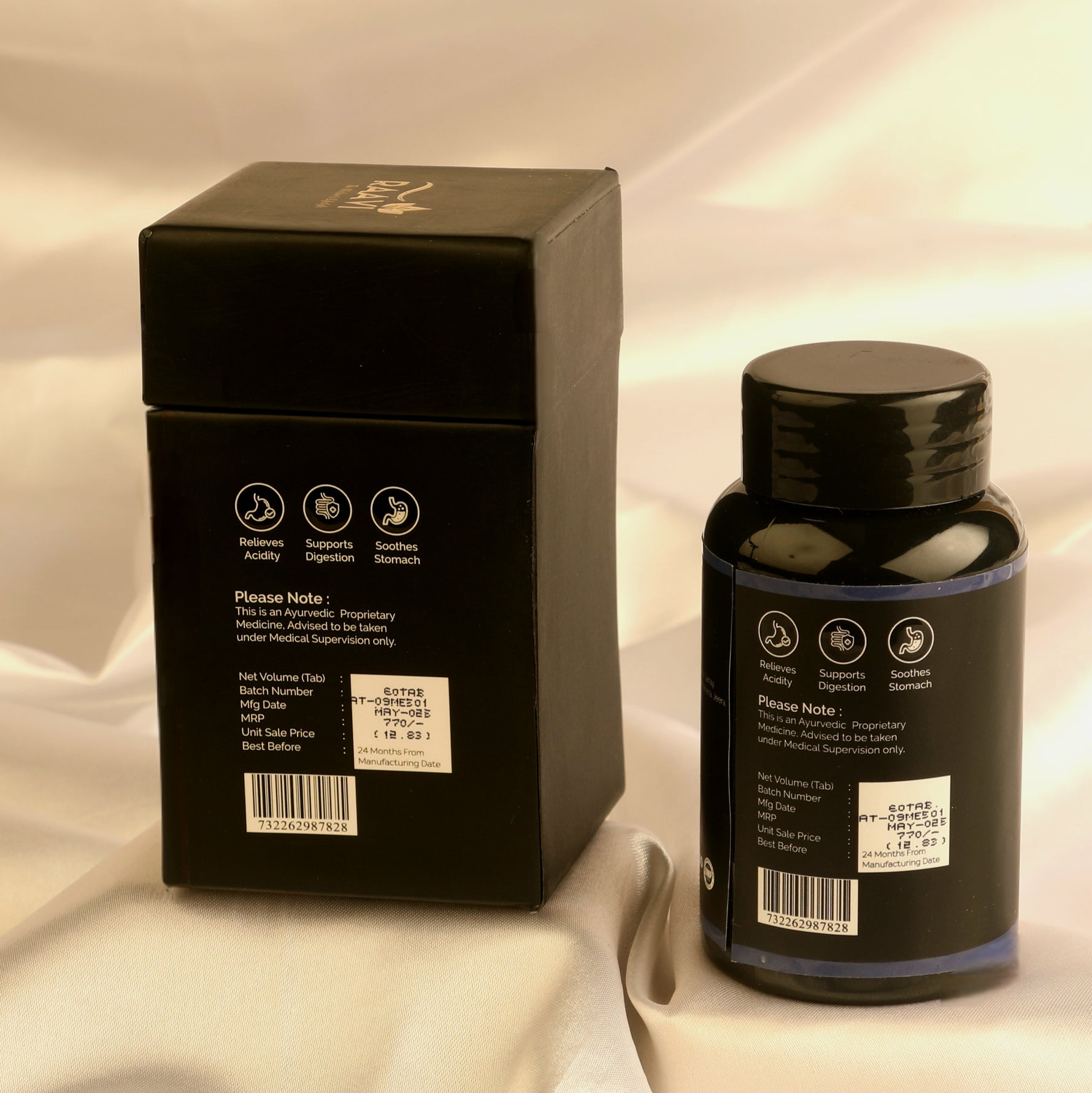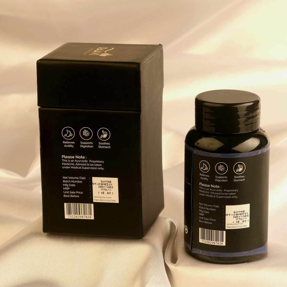 Indulge in the serenity of a balanced digestive system with Raavi No Acidity Tablet. Our premium formulation combines the finest natural ingredients to gently soothe and protect your stomach, promoting effortless digestion and calmness. Experience the luxury of comfort, free from acidity's discomfort. Refined for the discerning individual, Raavi No Acidity Tablet is a testament to the art of wellness, crafted to nurture your overall well-being. Discover a new standard of digestive care, where every detail matters. Enjoy the tranquility of a balanced gut, naturally, with Raavi. Nurture your digestive health, with elegance and poise.